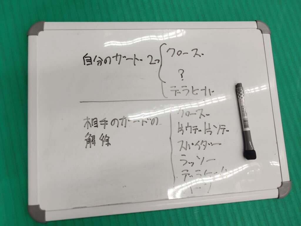 岩井さんと自分でガード解除を交互に行う→中村さん添削 の流れができたので体系的に学ぶことができて良かった。